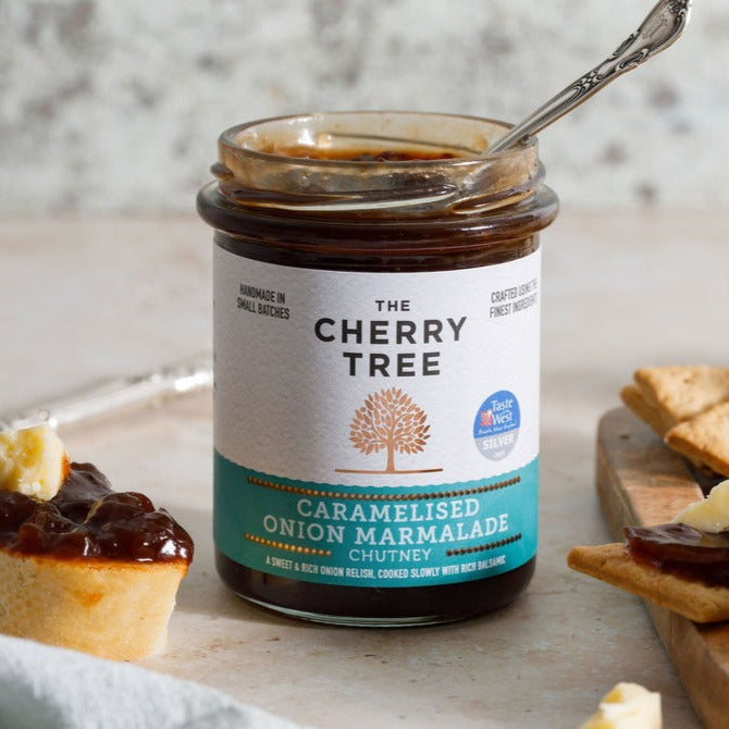 Our Caramelised Onion Marmalade is a rich, sweet-savoury delight that pairs perfectly with buttery mash and grilled sausages. The intense flavours of slow-cooked onions are beautifully balanced with a hint of balsamic vinegar, creating a truly memorable accompaniment to your favourite dishes.