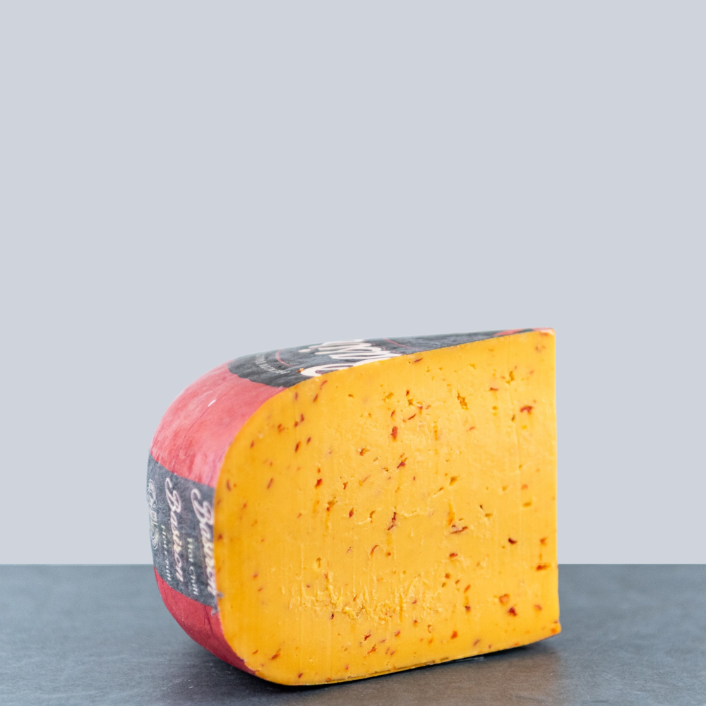 The chili cheese will definitely spice up your life. This spicy yet creamy cheese has a great all-around taste, starting with the creaminess of the cheese first, and then… the chili kicks in. Perfectly pairs with a cold beer and is great for melting and adding spice to any dish.