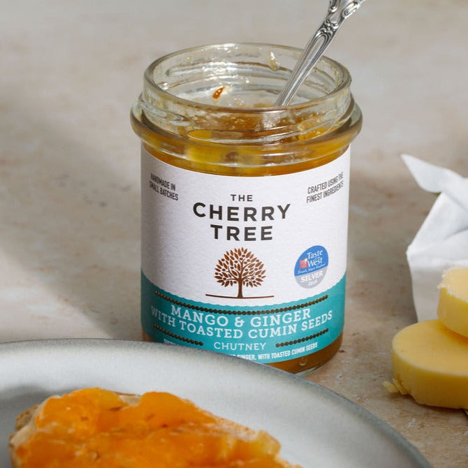 Mango (50%), sugar, onion, spirit vinegar, stem ginger (5%) (ginger,sugar), thickener: maize starch, garlic puree, lime, spices [spices, cumin seeds (0.3%)], acidity regulator: citric acid, salt