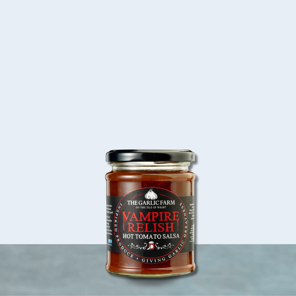 A blood-red tomato salsa with serious garlic undertones makes this the ideal associate for home made burgers & sausages and a must for pre-barbecue snack with tortilla chips. Try Vampire Relish as an alternative to tomato sauce or to stir through your pasta dish. Alternatively, this delicious tangy relish is simply addictive when used as a dip.