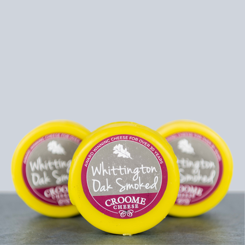 Worcestershire Gold gently smoked over oak logs. A wonderful golden crust with a slightly mellower centre makes our Whittington Oak a fantastic choice for your cheeseboard